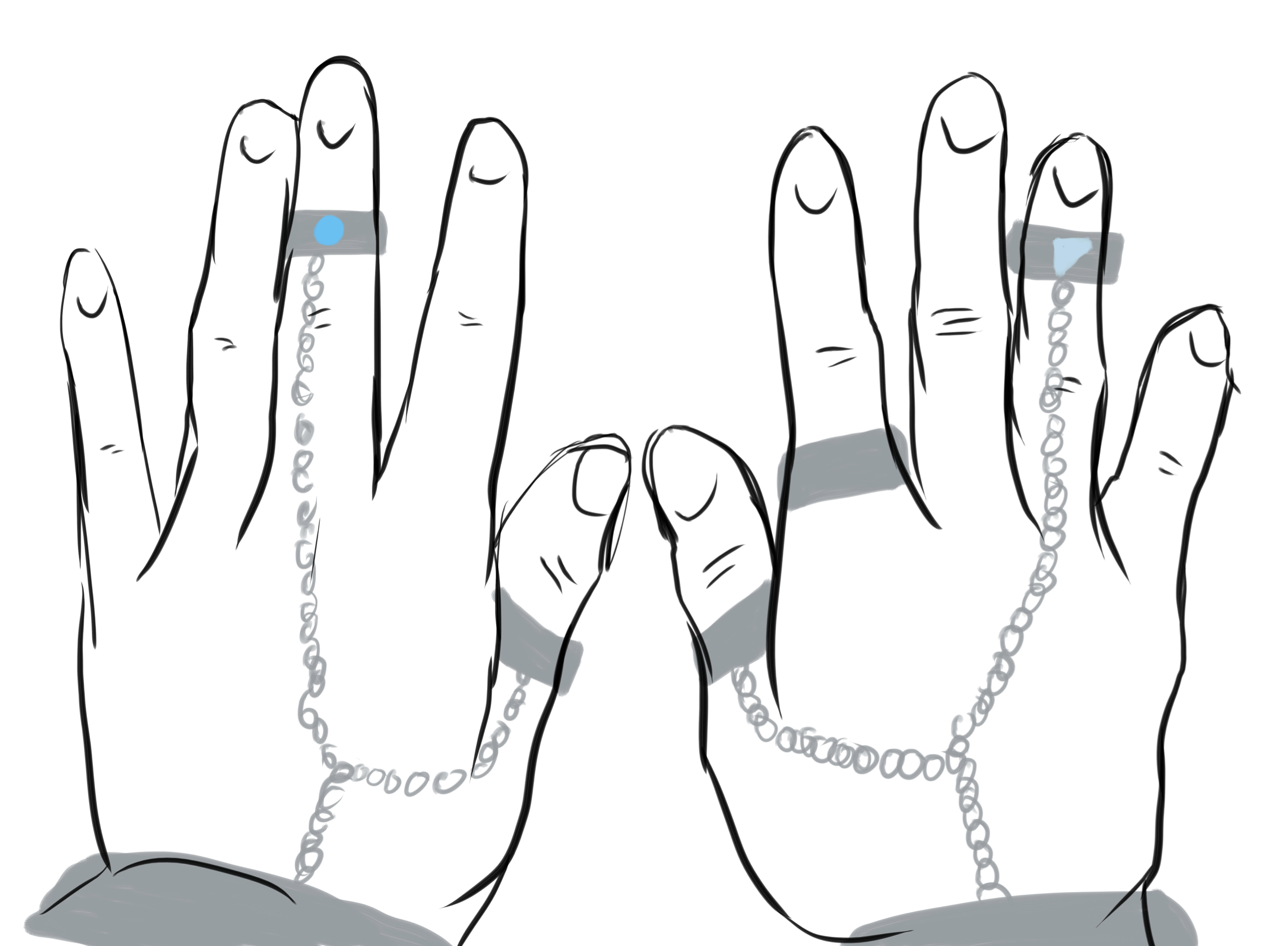 Mapping the internal water sources at the MET by using the hands as a grid and jewelry rings as locators.